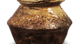 備前 水指 備前備前 水指 2014.06.262024.01.24 備前 水指 Bizen Water jar高さ19.9cm 口径11.6cm 底径11.9cm 矢筈口でまるい口部を一段と引き締め-胴は肩が衝き-裾にかけてややすぼまっています。胴に細かく横に箆目をめぐらし、深い縦筋目を四筋つけた、珍しい器形の水指でしょう。これもまた花生として作られたらしく、口の前後に穴を穿っていますが、いまは填められています。口部と肩の回りに赤いこげがあらわれ、一方は灰色に、他は暗褐色に焼き締まっています。内側に印がおされています。