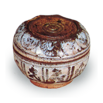 番付では「惣黄」のものを上位としているが、しかし実際には蟹が紫のものがほとんどで、まだ黄釉の蟹は見当たらない。この香合も全体が澄んだ青色で、蓋甲の蟹だけが紫色に浮刻されており、鮮明でしかも厚みがある。総体に貫禄を示し、土味は柔らかい。