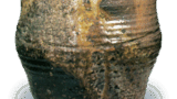 備前 緋襷 水指 備前備前 緋襷 水指 2014.07.072024.01.24 備前 緋襷 水指 Bizen 高さ18.9cm 口径15.2cm 胴径16.5cm 底径9.4cm 種壺風の水指でしょうが、やや背が高く、また全体にざんぐりとした作振りでしょう。口もまるく玉縁風に作られ、裾は強くすぼまっています。白い土膚はやや赤みがあるが、緋襷はくっきりと鮮かに出ています。見込にも緋襷が出ています。平らな底の畳付に窯印が箆彫りされています。