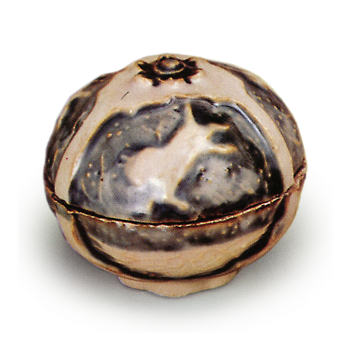 甲は干支の代表語。これに延命長寿を象徴する瑞花の菊と、蟹の甲をあてたもの。形自体に品格があり、大きさもほどよく、白釉がことに鮮麗な見事な逸品である。