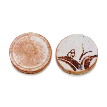 一文字の場合、この緋色もその重要な見所となるのであるが、この香合のように側面に出るものもあれば、底一面に出る場合もある。また側底両面に現われるものもあり、その場合は甲に絵がなくとも鑑賞価値をもつこともある。なおこの形は、堆朱や青貝の香合からとられたもので、底にくり込みがとられている。