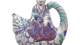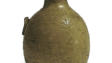 備前 烏帽子形 水指 備前備前 烏帽子形 水指 2014.07.132024.01.24 備前 烏帽子形 水指 Bizen Water jar of e-boshi (ceremonial head-gear) shape高さ15.5cm やはり初期の伊部手の作品でしょうが、全体やや厚手に成形されています。形はいわゆる鳥帽子形で、撫角の菱形に成形されています。外側一方と内部に厚く釉がかかり-しかも黒いこげ膚に焼き上がっています。烏帽子形水指としては初期のものと思われます。