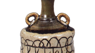 備前 烏帽子形 水指 備前備前 烏帽子形 水指 X Facebook はてブ LINE Pinterest コピー 2014.07.232024.01.24 備前 烏帽子形 水指 Bizen Water jar of e-boshi shape高さ16.6cm 口径17.9×25.2cm これも烏帽子形水指でしょう。薄手に轆轤びきされ、口部は強く菱形に、底はやや方形に近い菱形になっています。外側に三本ずつ二方に箆で文様をつけ、外側の一方と見込に薄く灰釉がかかり、他の面にも灰が淡く降って景色をなしています。見込にまるい抜けが二つあらわれ、底裏に細く文字が彫られていますが判然としないようです。いわゆる伊部手の水指でしょう。