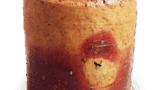 口部に手をさし渡した四方釣瓶形の水指だが、手を口辺の四分六分の間で渡すという好みはやはり江戸時代初期のものと思われます。全面に塗土をして焼成していますが、灰が激しく降った見込に赤い抜けが一つくっきりとあらわれて、味わいを深めています。また、底裏に大きくまるい置跡が残っています。箱の蓋表に「つるべ 古備前 水差 小出大隅殿ヨリ来」と書付されています。