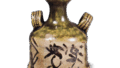 備前 瓢形 振出 備前備前 瓢形 振出 X Facebook はてブ LINE Pinterest コピー 2014.08.292024.01.24 備前 瓢形 振出 Bizen Gourd-shaped furidashi (small pot)高さ12.1cm 口径1.9cm 胴径8.3cm 底径5.6cm 小振りの徳利で、いまは振出に用いられています。上部は小さく、下部が大きくふくらんだ剽軽た姿の作品で-胴の上部に箆目をめぐらし、胴裾にも縦箆目をつけ、高台は円形に畳付を残して中央を削り込み、底に彫銘 があります。口部と胴の一部に薄く灰が降りかかり、他は赤く、柔らかく窯変しています。