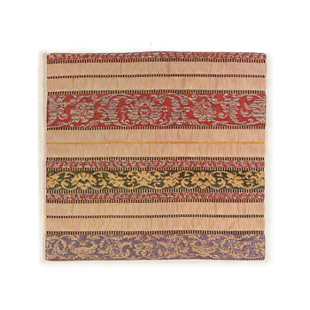 この裂はたぶん清朝中期のもので、地と紋との配色は見事であるが、段と段との組み合わせに無理がある。