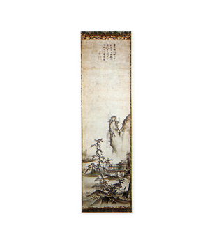 賛は「雨施雲脚長沙 隠々残虹帯晩霞 最好市橋宮柳外 酒旗播曳客思家 山市晴巒」。