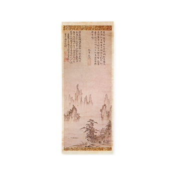 平遠構図による謹厳な画法であり墨色は潤沢、色調も透明で情緒的である。