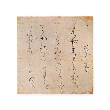 唐紙の胡粉が剥落して補筆部分もあるが、古来平安の三色紙中の白眉とされた。