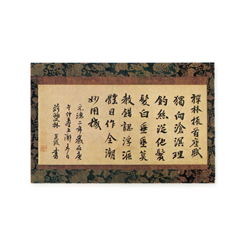 梅花文の文綾という絹地に書かれたもので、その書風はまことに枯淡で円熟の境を示している。