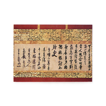 元代の後半期に活躍し 「東南の大法幢」と称された了庵清欲が、日本僧的蔵主の求めに応じて書き与えた送別の偈。