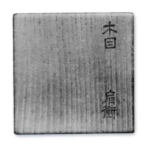 木目肩衝 唐物 松平伊賀守(加賀守か)所持、元文五申十二月十日借覽(寸法附属物、茶入圖あり)。 (名物記)
