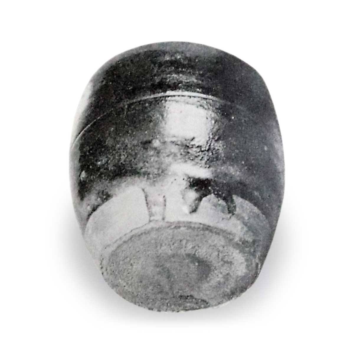 佗助 重さ三十五匁八分、高二寸五分半、橫二寸三分四厘、口一寸三分八リン、甑三分肩二寸一分半底一寸六分三リン袋二つ白極どんす廣東しま、惣體斑飴藥シャリウ樂溜り所々に有之、へら起し、腰帯廻る(茶入圖あり)。 (名物記)