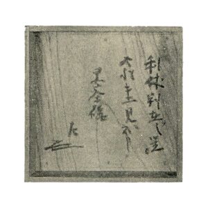 千利休―興善院―江戸 冬木家―寛政の頃、松平甲斐守―文化の頃、江戸の本屋惣吉、了我両人の取次ぎで松平不昧購入
