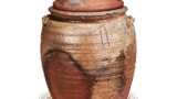 朝鮮産井戸茶碗のうち名物手井戸を大井戸と呼びます。大振りであるのでこの名があるのでしょう。『名物目利聞書』に「大井戸大作なるを云ふのみ銘物手と唱申候、品数うち交々出来よろしきを云ふなり」とあります。名物手井戸は古くから茶碗の王者で、製作年代は約六、七百年前とされ、見込の茶摺れ・茶溜まり・内外の口轆轤・胴轆轤・かいらぎ・高台竹の節・高台内の景色などあらゆる鑑賞条件を具えています。土は田土のように白い土ろくろ釉は艶のある枇杷色とでもいえる卵の殻のような色に少し赤黄色を点じた感じの色合いで、こまかいひびが現われています。そして見込と、外面の口造りから胴を経て腰に至るまでとは地土が平らで、したがって釉も平らに掛かっていますが、腰から下高台にかけては釉がおもしろく荒れて、いわゆるかいらぎになっています。腰から上部の釉には時粉引釉に近い白いしみが淡く現れたものがあり、かいらぎの所は白味がかった浅葱色の極め淡い色を呈しているものが多いです。名物手井戸の特色は釉が高台全部を包んで土が見えないことにあり、現存のもので地土の見えているのは長い年月を経て自然に釉が剥げ落ちたためです。姿形は端然と整って気品があり、轆轤目がよく立って高台の竹の節に趣があり、畳付きもどっしりと重みがあり、見込・茶溜まりの景色が素直に整ったものです。『古今名物類聚』所載の仙台侯所持大井戸は、のちに赤星家を経て1916年(大正五)大阪村山家に入り、また山上宗二所持の呼銘「しろ」という大井戸は、のちに豊臣秀吉に献上され1587年(天正一五)の北野大茶湯の時太閤道具の一つとして出陳され、1878年(明治一一)冬に北野神社で献茶祭が施行されたおり用いられ大阪木村権右衛門に伝わりました。現存の大井戸茶碗の著名なものは次の通り。喜左衛門・加賀・筒井筒・宗及・有楽・浅野・翁・坂本・細川・越後・松永・坂部・福島・美濃・金地院・老僧・紀・堀・立華・竜光院・九重・本阿弥・大高麗など。『大正名器鑑』『茶道名物考』『高麗茶碗と瀬戸の茶入』)※いどちゃわん