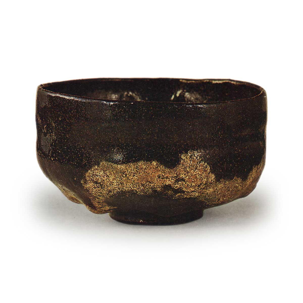 高台造りきっかりとして、内に楽印が捺され、畳付には飴がかった釉色がみられ、目が四つある。