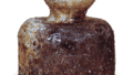 ビードロ釉が幅広く流れ、腰のあたりの焦げと重なり複雑な景をみせています。