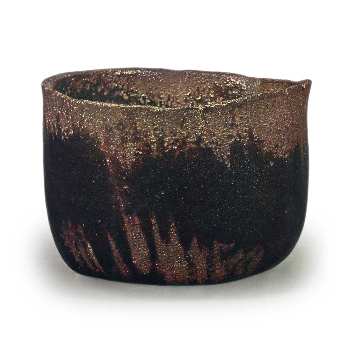 総体には丸造りであるが、口縁一部端反りになっている。やや薄作で、口縁には切廻しの口箆鋭く、胴には竪館が見える。ノンコウ風の漆黒の釉が胴では刷かれ、所々に火間多くあって、この手法は光悦独特の意匠と見られる。高台平たく碁笥底風である。