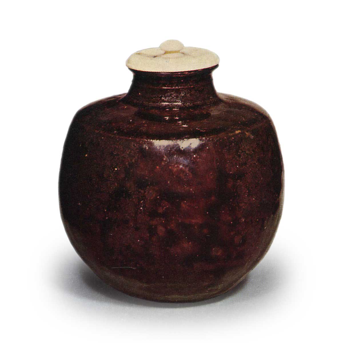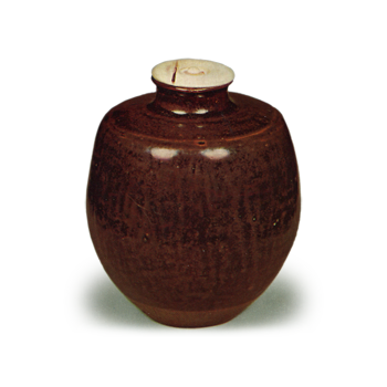 筆者は雲州家において拝見し、また現蔵者のところでも再見したが、口作りはややのび、肩には少しく角があり、胴ふくらみ、えもいわれぬよき姿、釉も濃く艶もよい。