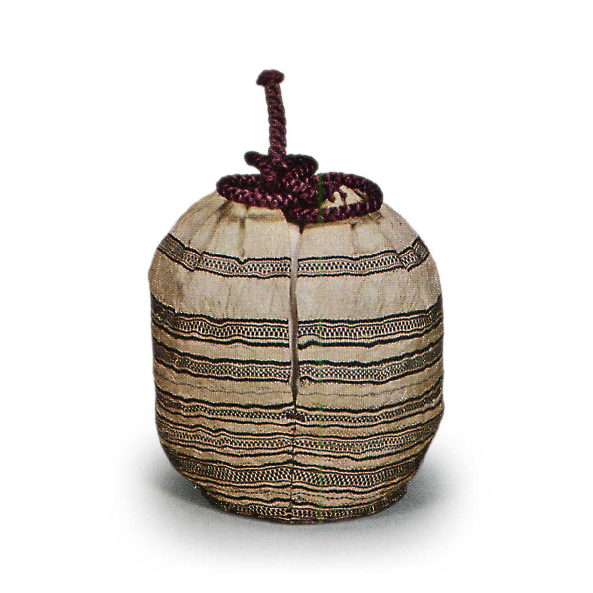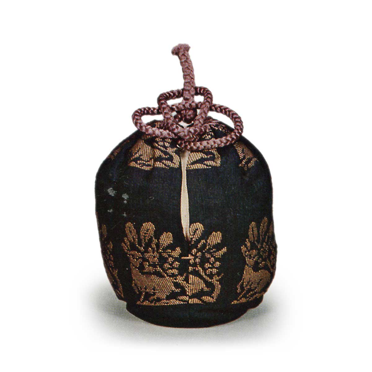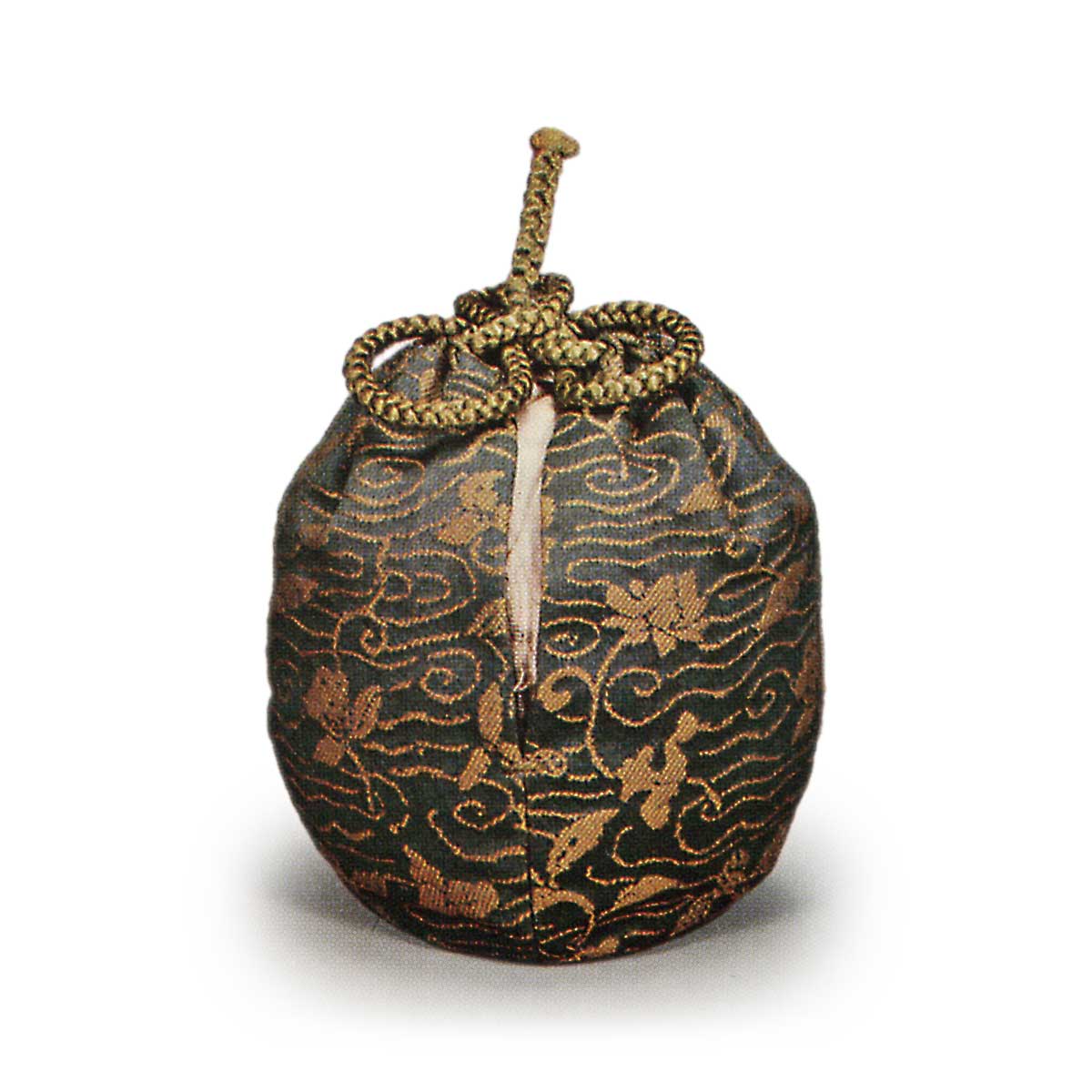 肩より静かにかかる釉があり、その脇に釉変りがあって、よき置き形である。底はしまって本糸切りあざやかで美しき盆付である。仕覆は六個。名物切の上品を取り合わせ用いられている。この茶入にかけられた仕覆の中の一個、水鳥純子を本能寺切とよぶ。