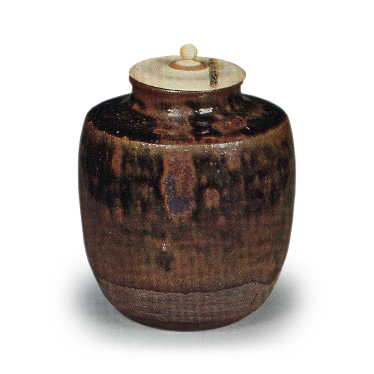 釉立ちもひとしく温和にかかって、流れ釉もさわがしからず、よき置き形ともなっている。土味こまかく板おこしの底も正しく見えている。