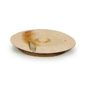 茶渋釉が総体にかかって、口縁から黄釉があらわれて正面になだれかかり、あざやかに置き形をあらわしている。