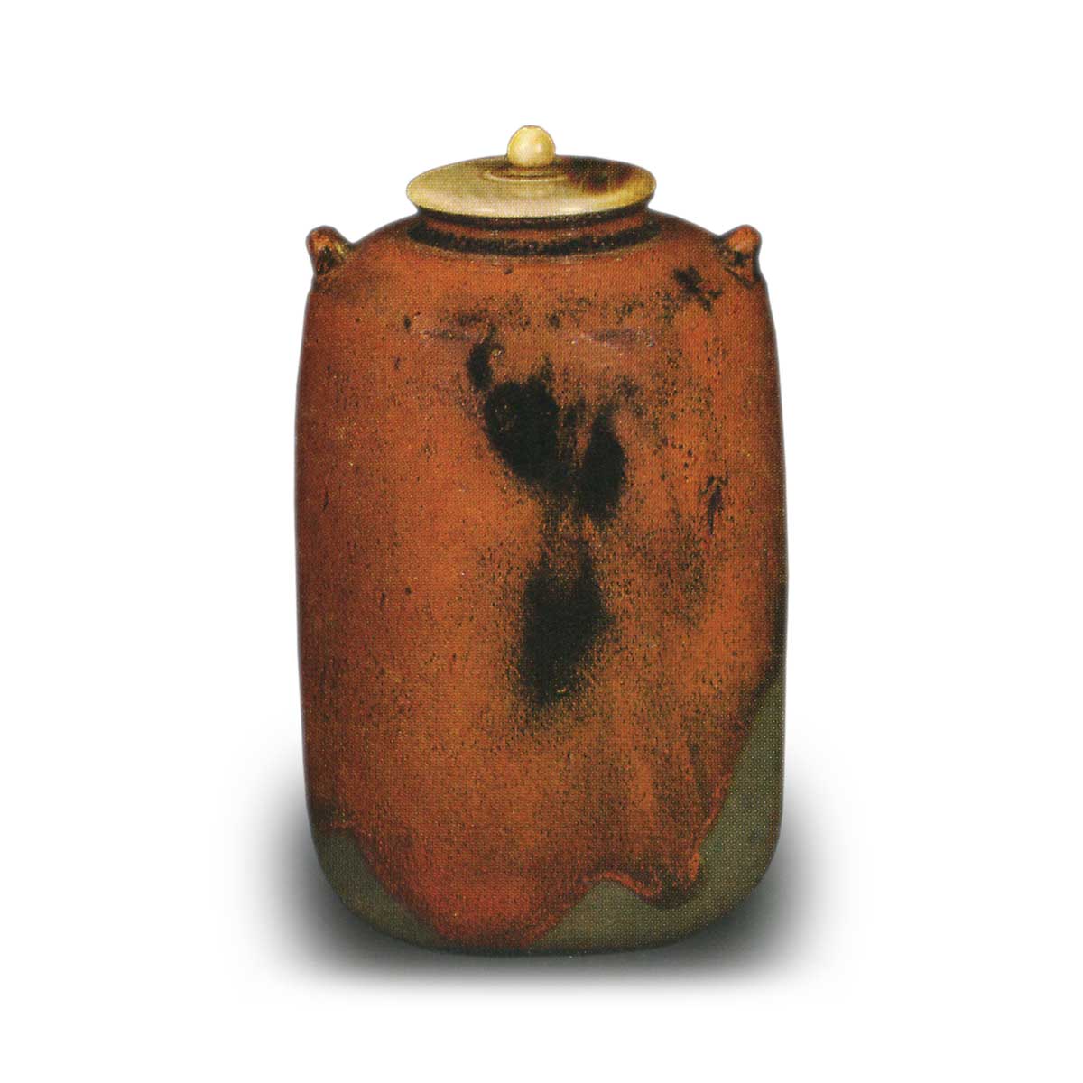 この茶入は、従来の丹波と異なり、土すごくこまかに、釉立ちも精密な調合とみられるが、高尚な色合いと奥深き重なりを見せた景色は、窯中の火変りによって推量すれば、あまたの中から、ただ一個の焼成を得たとも思われる名作である。