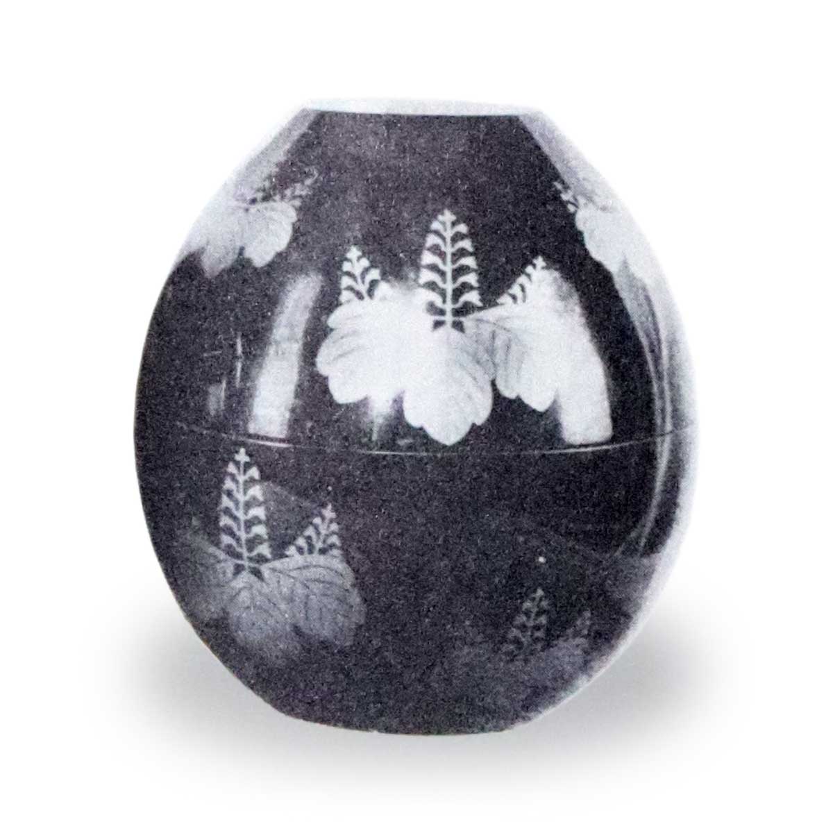 盆内の唐蒔繪は葉緑色、枝幹金色柘榴の質は黒色