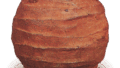 上が柔らかいうちに箆で大胆に檜垣文を彫り込み、鉄釉でその上をなぞって長石分の多い釉をかけたものです。いずれも厚造りの豪放な作行きで、大振りのものが多いです。口辺をゆがめた沓形風の造形、胎土の肉取りが口辺まで厚いこと、文様の檜垣文などは、美濃の志野・織部などの影響が強く感じられます。この茶碗は全体にかいらぎが出た珍しい釉調で、口辺四ヵ所を指で押してあり、胴には五つの×印からなる檜垣文が彫られています。正面に箆彫りと関係なく鉄絵の線が一本余分に引かれているのも、陶工の自在な心の余裕を感じさせて面白いです。十七世紀はじめの岸岳飯洞甕窯の産です。《寸法》高さ9.4 口径12.5~14.1