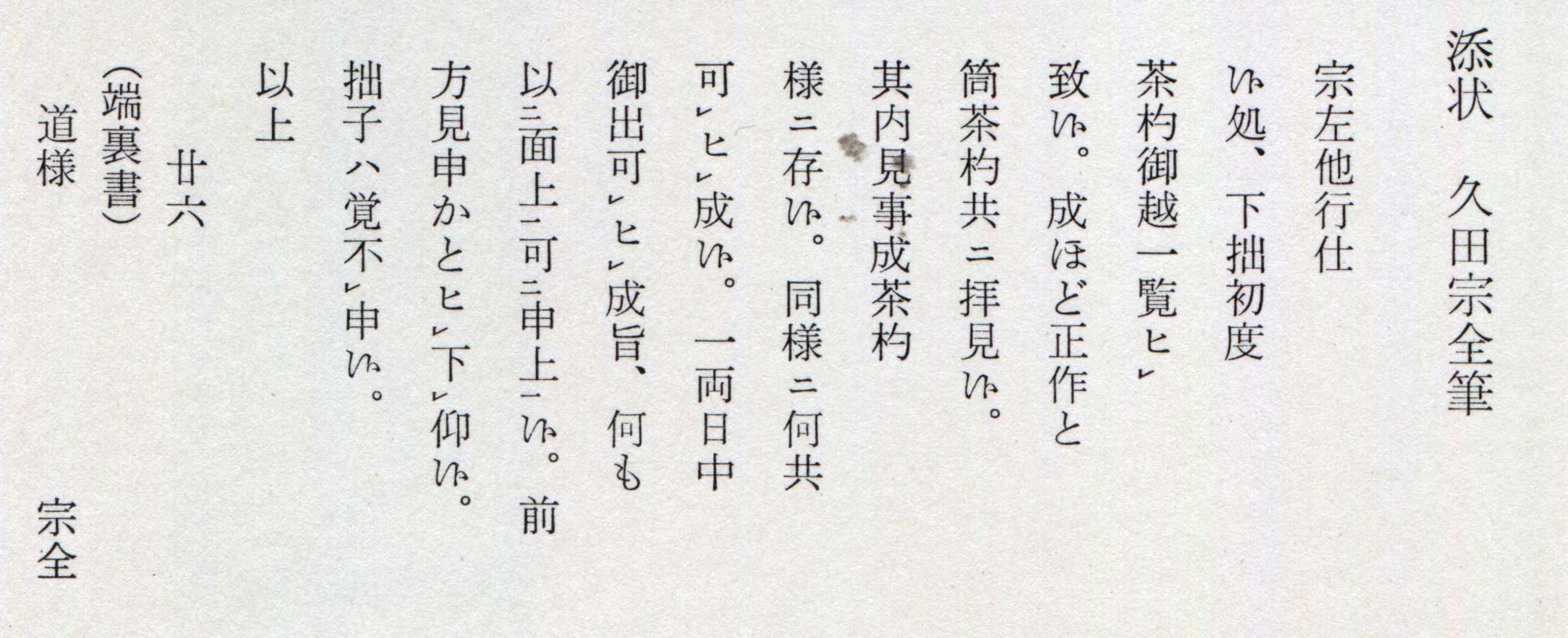 添状 久田宗全筆