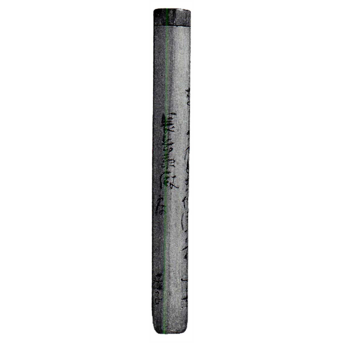 筒も杓も保存のよき点で遠州茶杓の第一である。杓はずいぶん見事な竹で、全体に黒白片身替になり、切止の方の黒い斑文の中にごまを混えている。また節にも小さい凹みが景色となっている。櫂先も有馬山型(後に説明)で、厚手で中節が高く盛り上がっている。