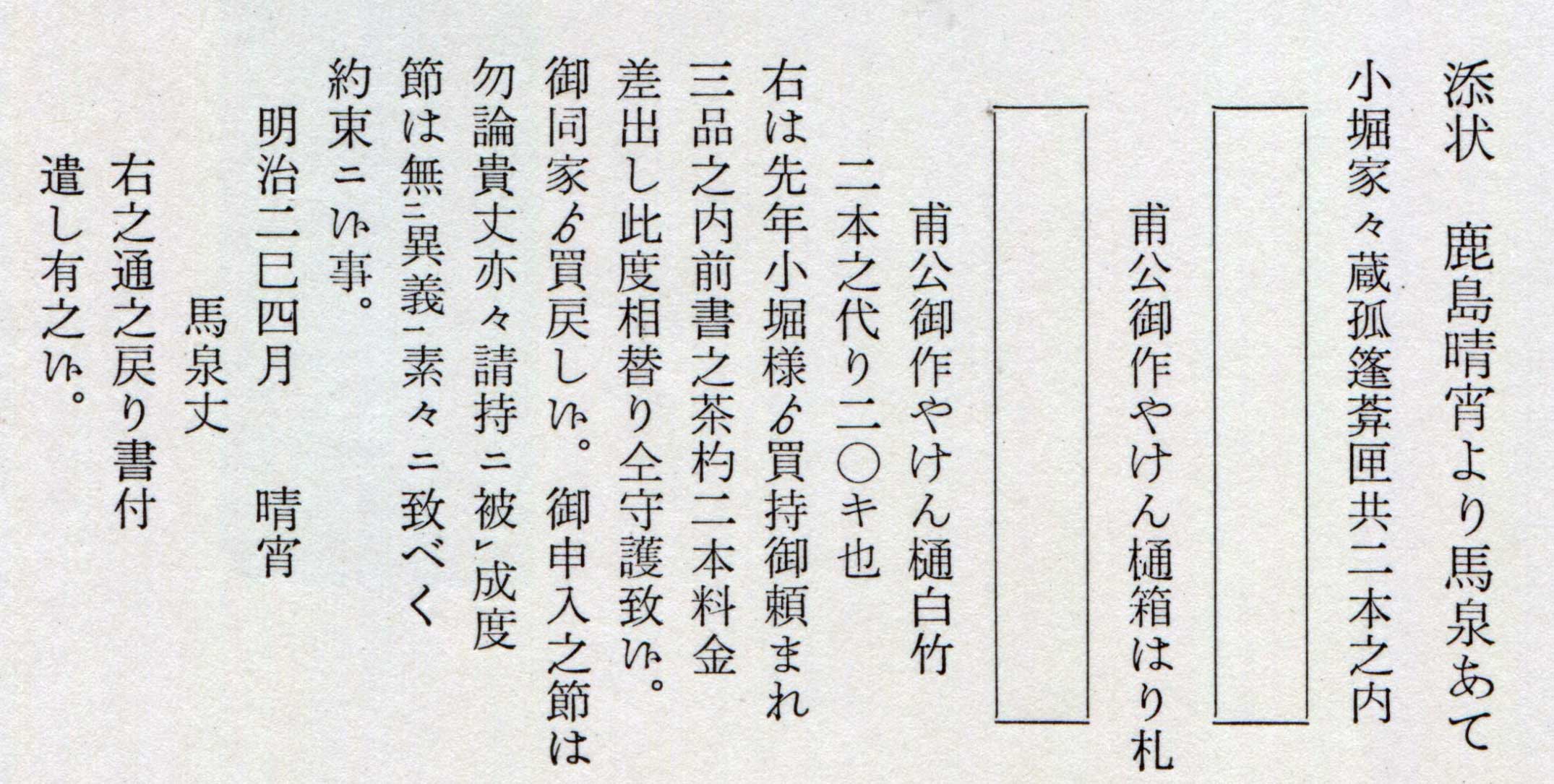 箱 桐 白木 書付 鹿島晴宵筆(遠州流)「宗甫之茶杓糸桜」