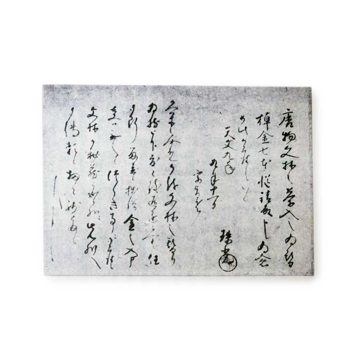 一文琳茶入之儀昔私父袴田内匠と申大坂崩之時分堺に牢人仕罷在候其節公家衆より質物に取申候由其埒濟私幼少之時分くれ申候に付拙者手へ參、五十年持傳申候、獪面上に可得貴意候、以上。