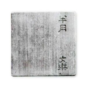 华月文琳 高一寸九分、口七分、胴一寸九分底九分五厘袋純子花色龍。箱遠州書付本糸切土かはらけ色。 (茶器圖寸法書)
