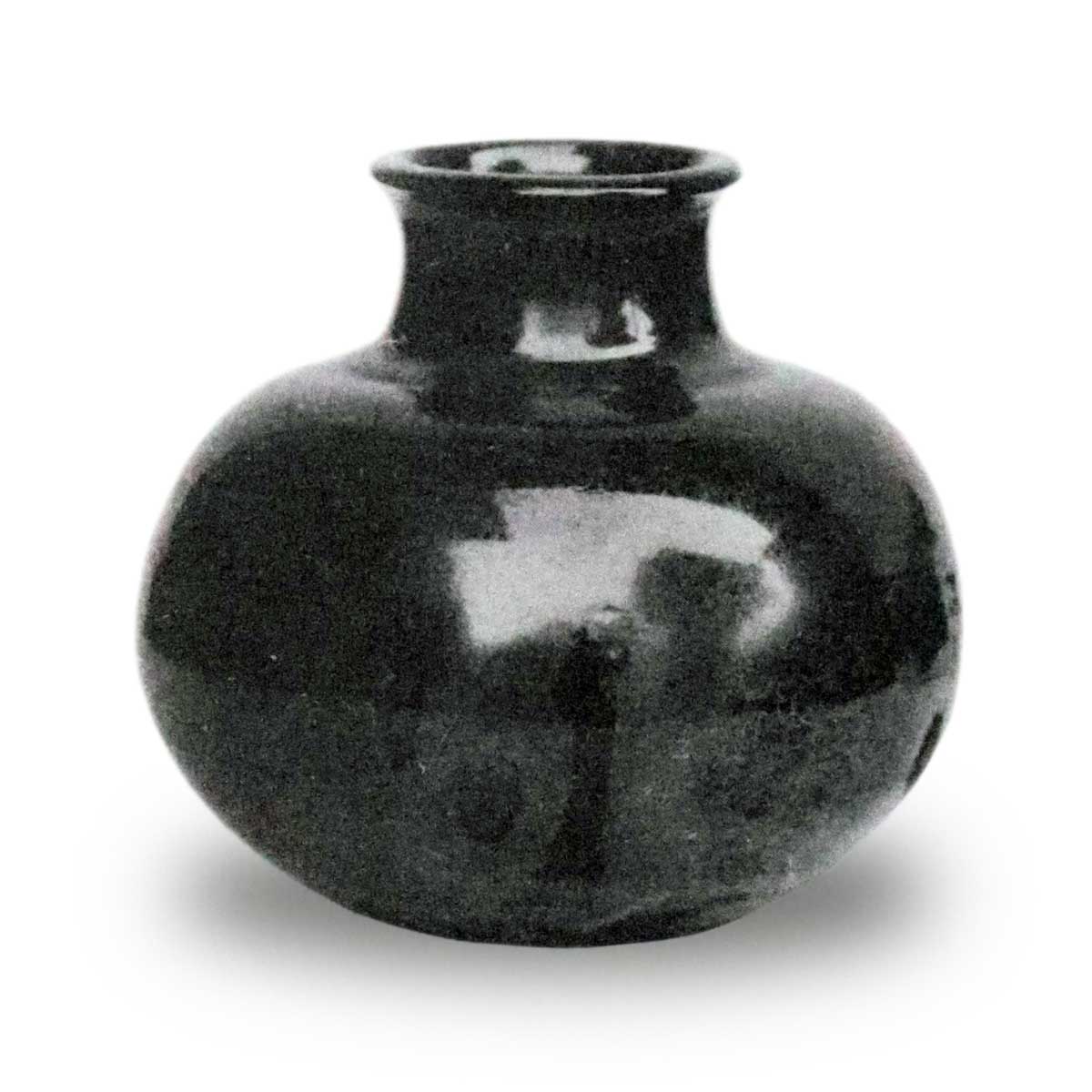 石河丸壺 漢、土鼠、多分赤に變る、下藥飴厚くかゝる、上藥共。盆付糸切置形垂左の方に藥裂あり胴帶一すぢ、口細二すぢ、艶ふかき出來しぼなり、惣體釉質梨子地に見ゆる。 (前田侯爵家道具帳)