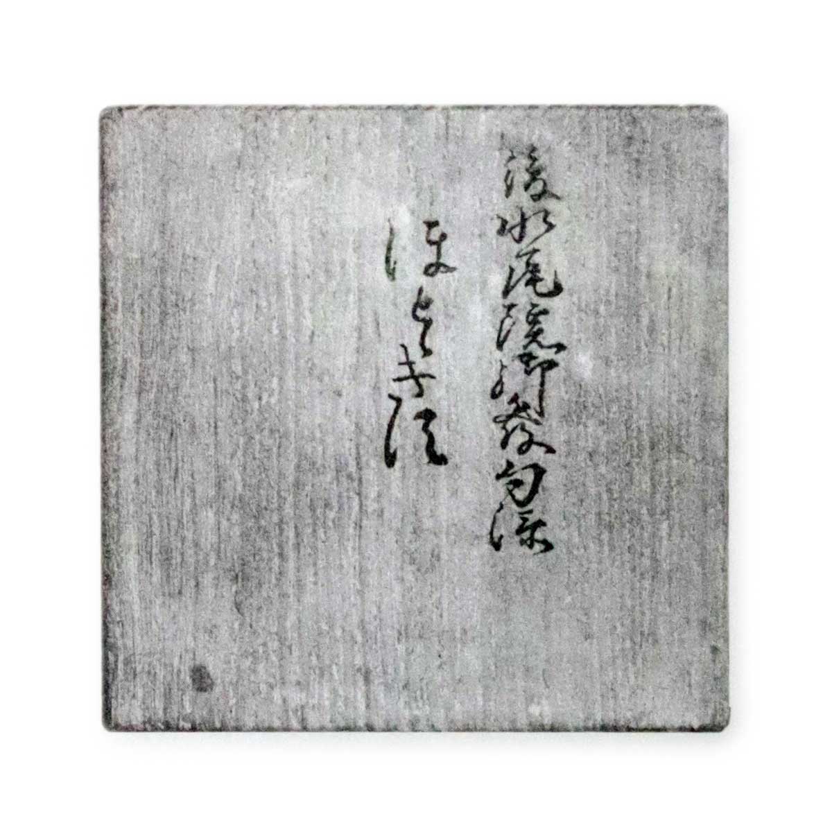 添書付に紹滴所持丸壺とあり、茶家系譜詳本に「竹藏屋紹滴、珠光に學び茶道を能くす、或は云ふ、中藏屋又は籠屋と。泉州堺に住し、引拙、宗理く名を齊しうす或は紹鷗門人なも」ざあり。其後後水尾院聞召され、尊澄法親王を以て上覧の御所望あり數日仙洞に留置かせたまひ、御返下の節「惜むらん人におもへは時鳥の發句御宸筆を賜りければ、是より此茶入を時鳥と云ふとぞ。其後平野道節といへる茶人の仲介にて、酒井雅樂頭より金三百枚にて所望せられしも終に之れに應せざりしと云ふ。而して其毛利家に納まりたる年代は不明なり。