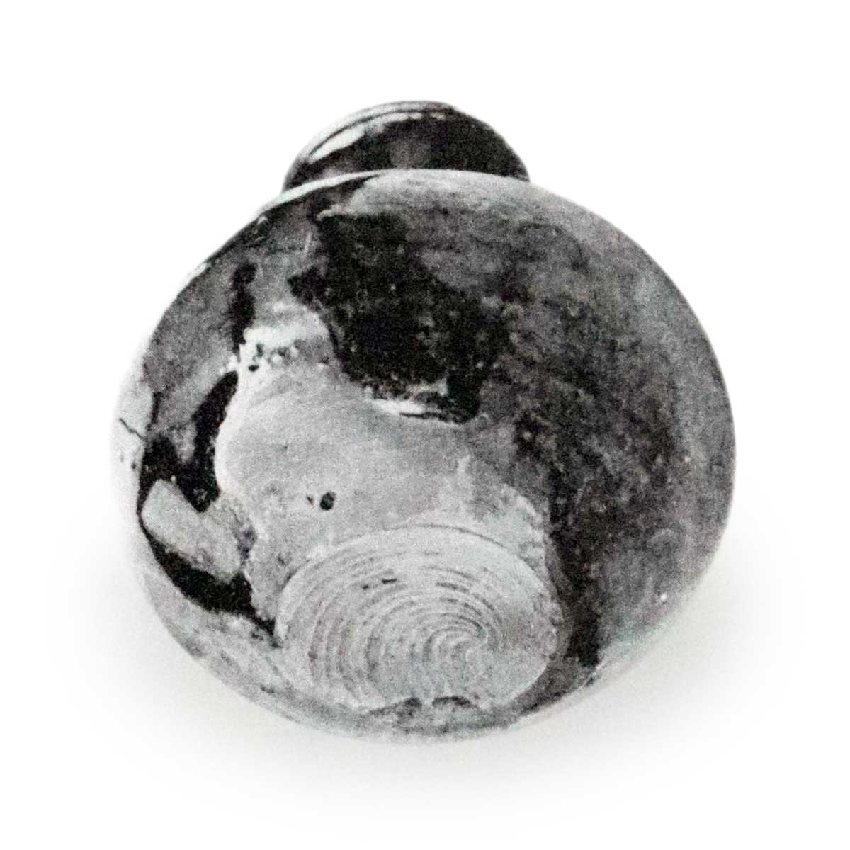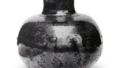 圓壺 長二寸四分二厘、口指渡一寸分胴廻り七寸分牛底一寸。口造捻返し尋常なり、但口甑高し、土薄赤色、但し微塵の砂ある樣に見ゆるなり、糸切華奢なり、下藥薄色にて、黑藥銀強きに銀梨子地あう、上藥は濃き黑藥なり、散し藥も同事也、尤濃薄き色あり、是を瀨戶藥の唐物と云へり。 (茶器辨玉集)