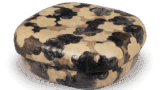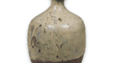 染付 竹文 輪花 大皿 古伊万里染付 竹文 輪花 大皿 2016.04.252023.10.11 染付 竹文 輪花 大皿 高さ7.9cm 口径35.0cm 底径9.5cm 口部を四弁の花形にした大皿で、見込には竹を描き、四つ割にした側面には花弄文を描いているが、染付が流れて文様は判然としない。上にかかった釉はかなり厚く、青みをおびたいわゆる醇釉の状態になっているが、おそらく百間窯で焼かれたものであろう。裏は無文である。