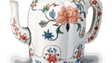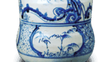 この二つは吹墨手中皿の代表的な作例である。その意匠は古染付と極めて類似したものであり、染付 吹墨 月兎文 皿は月兎があらわされ、染付 吹墨 飛鶴文 皿には飛翔する二羽の鶴が描かれている。文様の部分に型紙を置き、その上に呉須の顔料を吹きつけ、型紙をはずした後に輪郭を線描きしたものと思われるが、その作振りはまことに瀟洒である。縁はくっきりと鐔縁にし、高台は口径に比して小振りに成形されている。