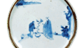 染付 山水文 皿 古伊万里染付 山水文 皿 X Facebook はてブ LINE Pinterest コピー 2016.05.202023.10.11 染付 山水文 皿 高さ25.7cm 口径26.1cm 三脚 前図と同じ作風の皿であるが、器形を葉形にし、口縁を不規則に歪めている。見込には山水の図を描き、不規則な枠どりの縁文様をあらわし、回り三方に祥瑞風の文様を配している。これも従来藍九谷といわれたものであるが、やはり百聞窯あたりで焼かれたものと思われる。底の三方に脚をつけ、裏面にはのびやかな筆致で単純な唐草があらわされている。高台内に「太明」の銘がある。