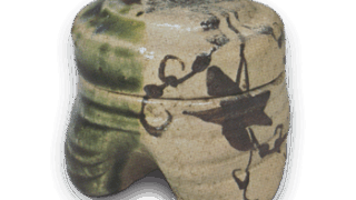 染付 鉄釉 牡丹文 香炉 古伊万里染付 鉄釉 牡丹文 香炉 X Facebook はてブ LINE Pinterest コピー 2016.06.272023.10.12 染付 鉄釉 牡丹文 香炉 高さ7.2cm 口径4.8cm 底径4.8cm 三脚 小振りの壺形をした香炉で、煙出しの穴をつけた蓋が落とし掛けられ、底回りには三方に獣足風の脚をつけたおもしろい器形の袖香炉である。胴には浮文様で兜花風の牡丹文を三方に大きくあらわし、浮文には鉄釉をかけ、地には呉須をだみ塗りしている。瑠璃地のように見えるが、瑠璃釉をかけたものではない。おそらく百聞窯で焼かれたものであろう。この種の鉄釉と染付、あるいは瑠璃釉をかけた香炉が他にもかなり伝世している。