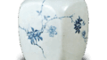 あたかも明初から宣徳頃にかけての瓢形扁壺そのままの作例である。明らかにこの種の明初の染付瓢形扁壺を写したもので、かつて例を見ない作品である。しかし染付、素地、その他詳細に検討すると伊万里以外には考えられないもので、今後この種のものがさらに発見される可能性があるといえる。ことに、胴にあらわされた巴文を中心とする八弁の花文、さらに円形の七宝地文の縁文様など伊万里らしい表現である。側面には唐草風の文様をめぐらしている。製作年代は判然としないが、これもまた寛文以前と考えられる。