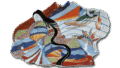 これらはいわゆる弓浜といわれている作品で、破魔弓と熨斗を装飾化した皿で、おそらく武家の注文によって作られたと思われる。製作年代もほぼ同一時期ではないだろうか。