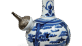 オランダ側の記録によると、この種の瓶を「ガリポット」と呼んでいる。胴が豊かにふくらみ、口の下に一段鐔をつけた独特の形式である。胴に、牡丹とそこに宿る小禽の図がしっかりとした筆行きで描かれている。この作品の資料的声価が高いのは、高台内に花輪で囲まれた「I・C」の頭文字が記されているからで、この「I・C」のマークは、 1671年に出島のオランダ商館長であったヨハネス・カンプハウスの頭文字と推定されたからである。ヨハネス・カンプハウスは、その後、 1684年から1690年まで蘭領束印度総督であったから、この瓶はおそらく、彼がバタビアに滞在していた1680年代後半に注文して作らせたものと考えられている。天和から貞享の問にあたる。