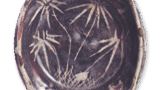Dish with hibiscus and chrysanthemum design. enameiied ware