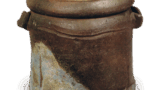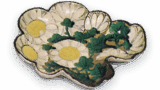Octagonal dish with design of ‘various treasures’ aroundcharacter kotobuki (‘Congratulations’). enamelled ware