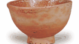胴をしぼったという造形から、初期の楽茶碗とのつながりも考えられて、茶情深い茶碗である。