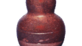同じ黒釉を使いながらも、器体の一部に絵文様のあるものを黒織部茶碗、器体総体に黒釉をかけたものを織部黒茶碗と呼び区別します。器形は胴で一度しぼり、高台は瀬戸黒のように小さく丸いです。腰の直角なところも瀬戸黒に似て、瀬戸黒から織部の沓形へ移行する中間に位置する茶碗でしょう。箱書は古田織部筆と伝え、 「くろちやハん」と記されています。胴をしぼったという造形から、初期の楽茶碗とのつながりも考えられて、茶情深い茶碗であります。《付属物》箱-桐白木、書付古田織部筆《伝来》古田織部1松井佐渡守康之-‐長岡佐渡守直之《寸法》高さ8.2~8.7 口径12.0~12.8 高台径5.4 同高さ0.6 重さ495
