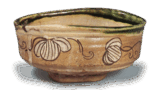 香合としては大振りですから、おそらく茶器として作られたものでしょう。 素直な鈕のついたまるい蓋を口部に落としかけ、 胴締めのずんぐりとした胴の肩に耳をつけ、底には低く輪高台をつけています。胴の上下には小菊の印花文をめぐらし 白抜きの部分には石畳文などを細かに鉄絵で描いて長石釉をかけ、蓋裏や身の内部、高台内は白く細かい土膚を見せています。 緑釉が鮮やかに発色し、 他にほとんど例を見ない秀作であります。