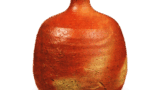 Black Oribe ‘Shoe’-shaped tea bowl with spiral design. Kuro-Oribe